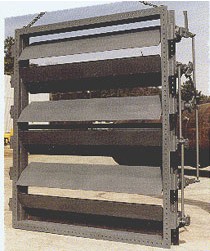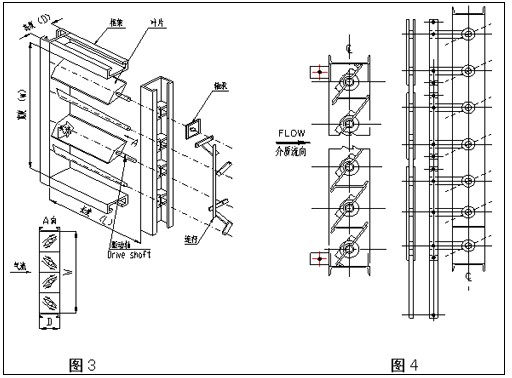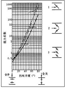 | 性能要求 良好的调节性能:挡板开度在15°~75°范围内,其阻力系数与开度之间接近线性关系。 挡板叶片具有流线型形状,改善气流尾流分配状况。 图5为三种不同结构的调节挡板风门的调节特性曲线。 调节挡板风门的调节灵活性由电动执行器来保证。电动执行器的驱动力矩由烟风道的流量压力温度以及轴承和连杆的结构来确定。确定驱动力时需考虑转动力矩的作用,只有克服这一力矩才能使挡板调节时转动自如。 防止颤抖。部分开启的挡板在气流中发生颤抖,颤抖剧烈时会造成密封与轴系的损坏,故连杆与紧固件都要保持张紧而不松动。 执行机构驱动杆与挡板风门的连杆还可采用差动连接来改善调节性能。 特殊要求 |